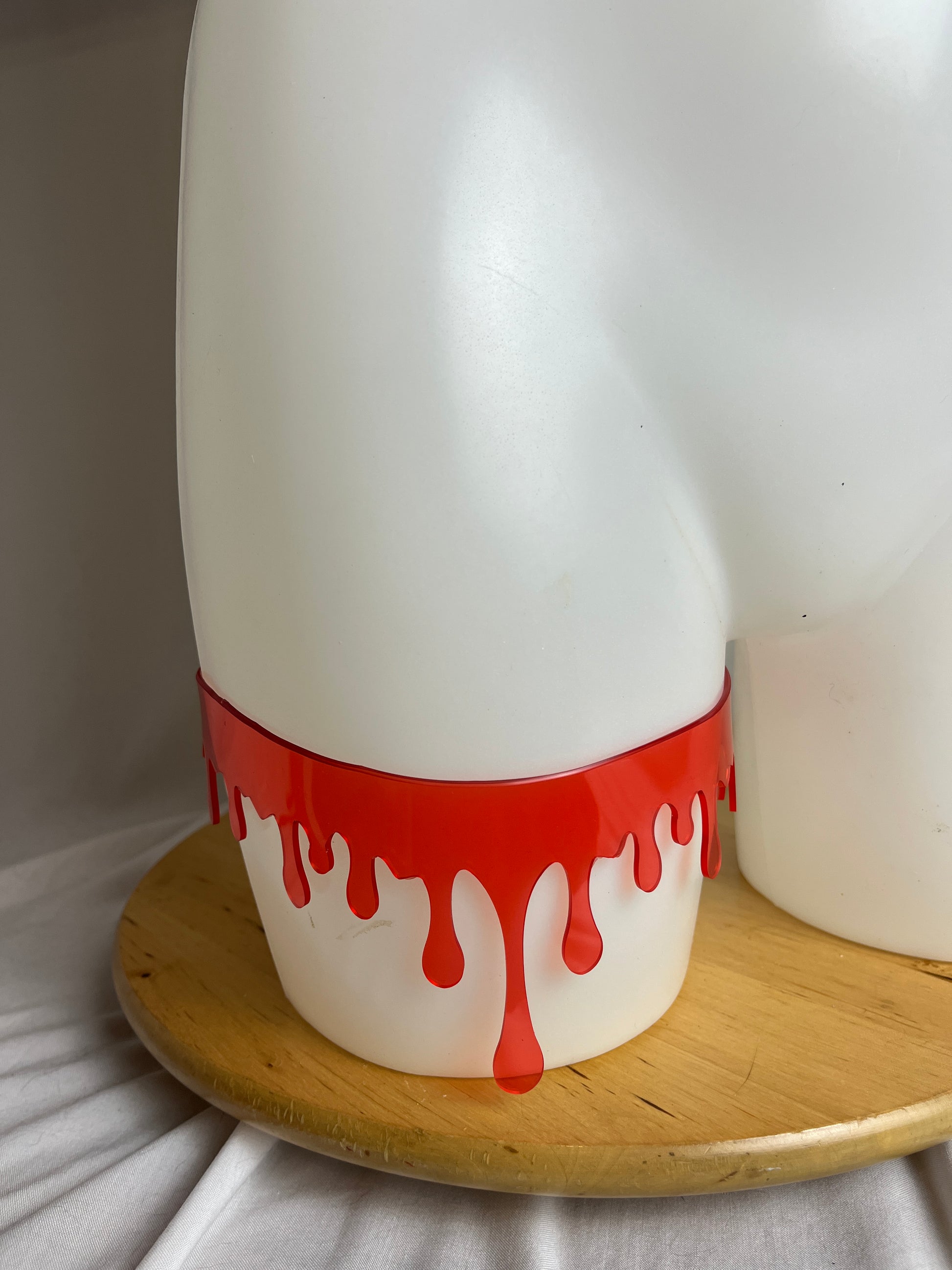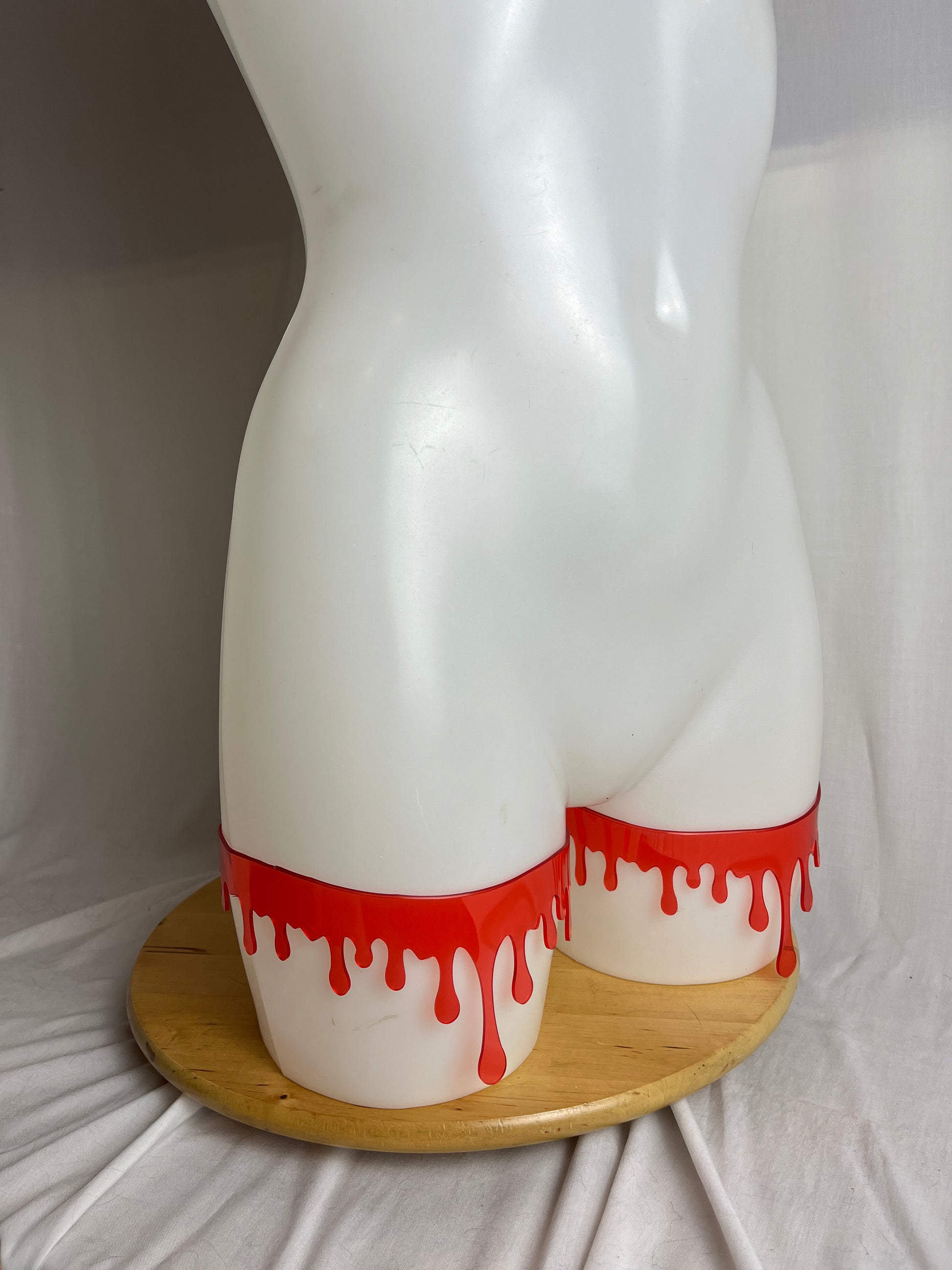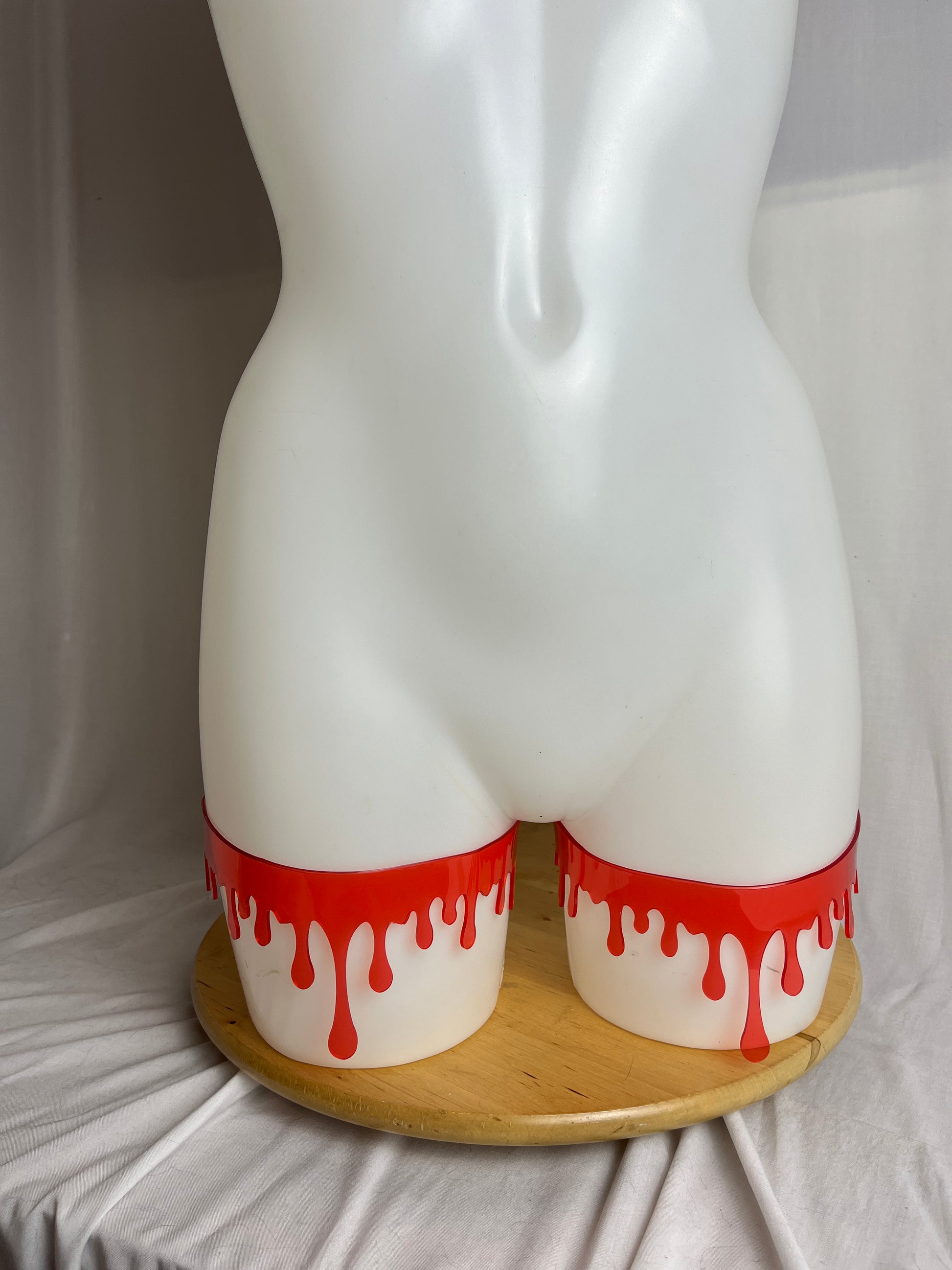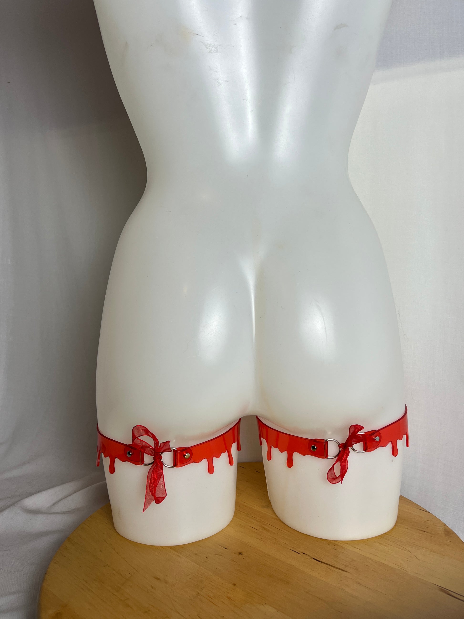 These garters are made from 2mm thick transparent red vinyl. Custom fit to measure.